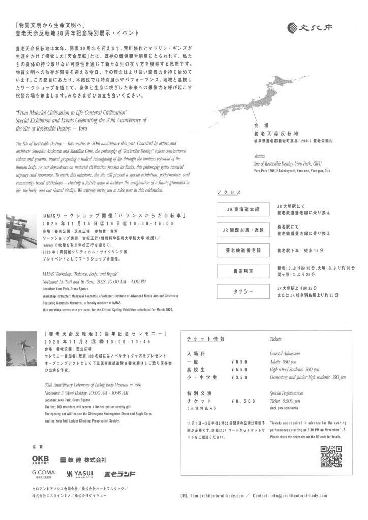 養老天命反転地 30周年記念イベント「養老天命反転中!Living Body Museum in Yoro」に協賛いたしました。
